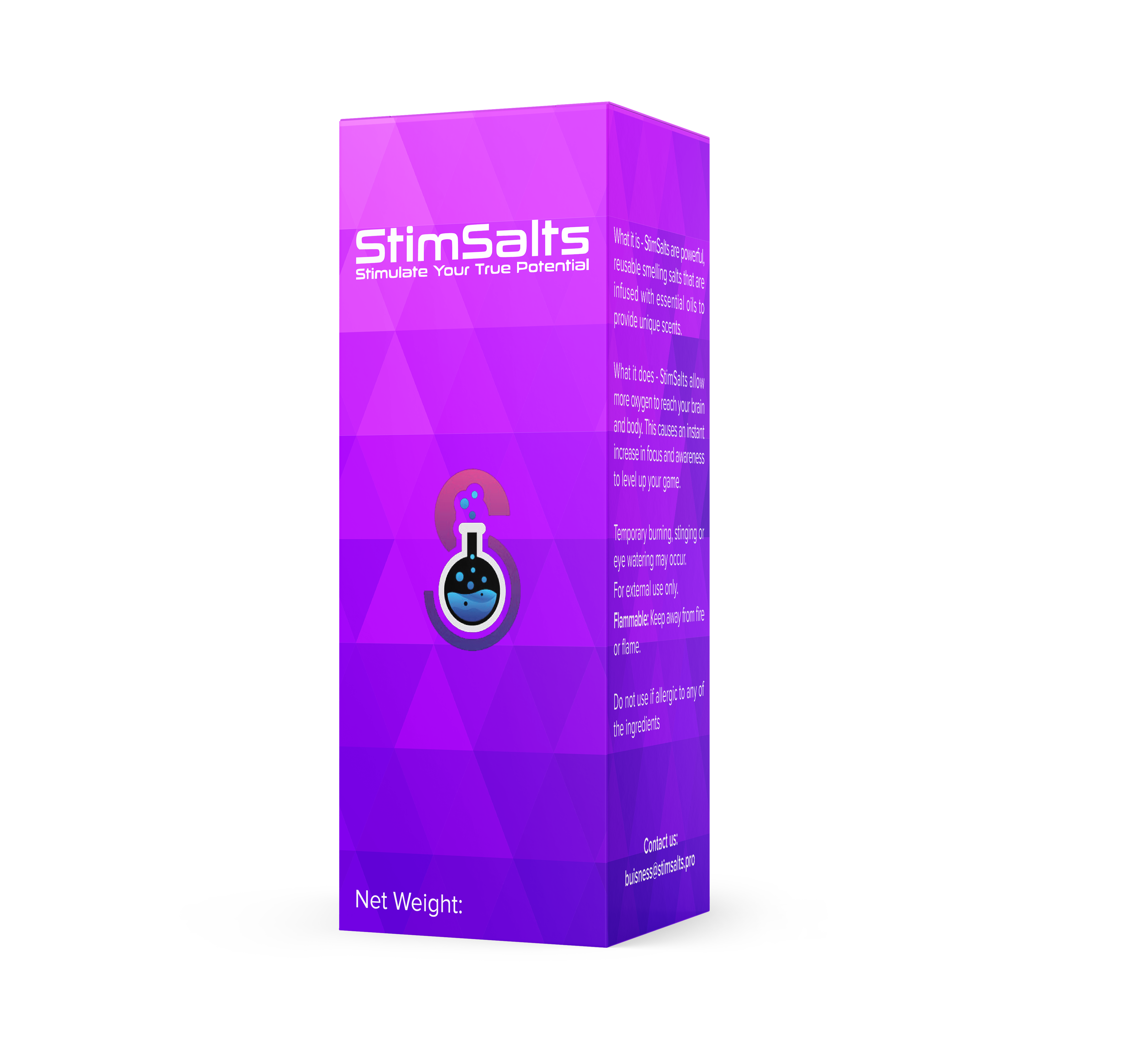 According to the Centers for Disease Control and Prevention (“CDC”), no adverse health effects have been found in humans from low levels of exposure to ammonia. At higher levels of exposure, ammonia can irritate the throat, lungs, eyes, and skin causing coughing and burns. Using Stimsalts properly and in moderation, should not result in a person reaching high levels of exposure to ammonia. We recommend stopping use if any discomfort is felt and consulting a doctor if you have any concerns before use. Stimsalts have not been approved by the FDA.